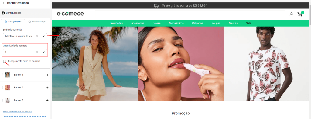 Quantidade de banner: 2, 3, 4 ou 5.